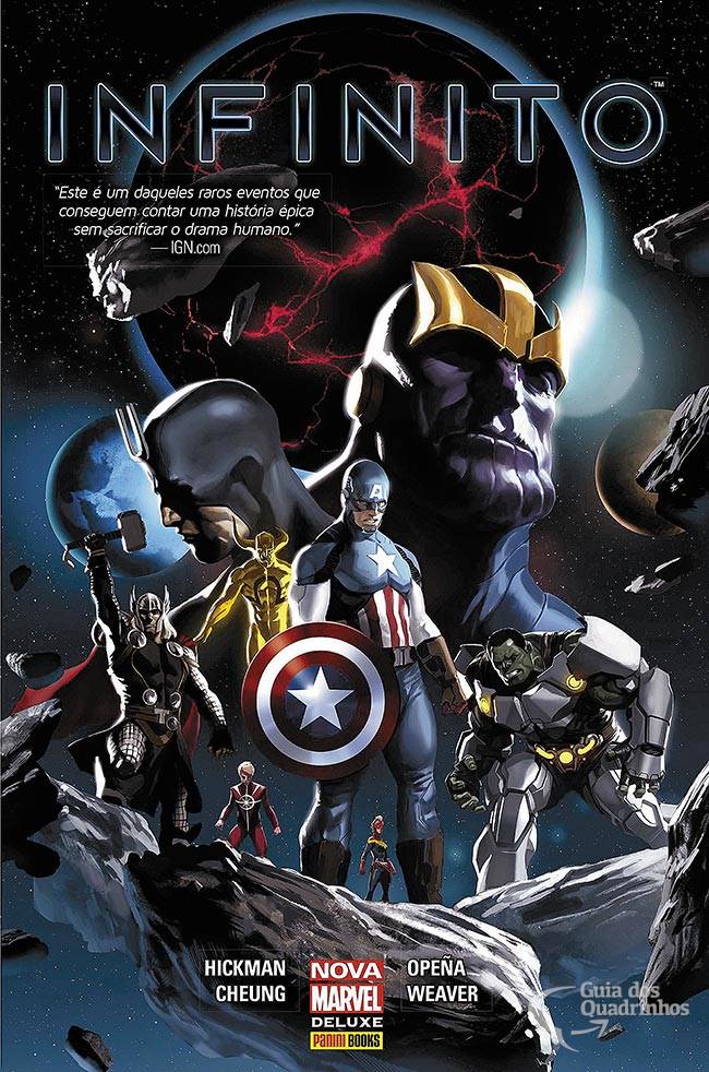 Quando a raça mais antiga do Universo almeja destruir a Terra, o Capitão América se vê obrigado a pensar grande. Muito grande. Enquanto os membros da mais poderosa equipe já reunida viajam ao espaço para se unir a uma aliança intergaláctica contra os Construtores, um velho inimigo acredita que eles deixaram para trás um planeta desprotegido. Thanos, o Titã Louco, libera suas tropas na Terra no mais recente capítulo de sua interminável busca pela morte.