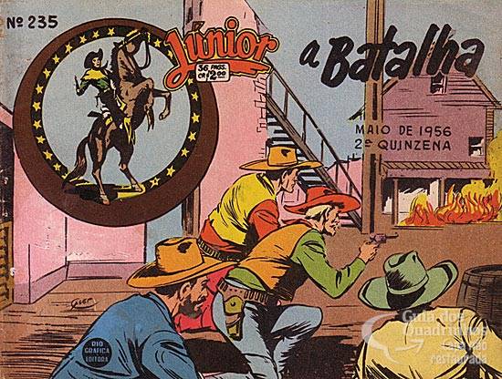 Título original italiano: “La disperata battaglia”. Para desentocar nossos heróis, os bandidos resolvem incendiar a loja do próprio chefão, Jim Boulder.
