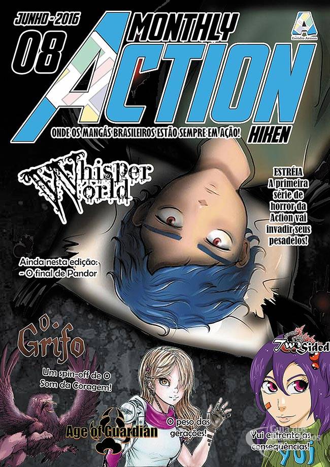 Whisper World n° 1 ESTRÉIA, Age of Guardian n° 6, Two-Sided n° 3, Pandor n° 2 FIM, O Grifo (One-Shot)