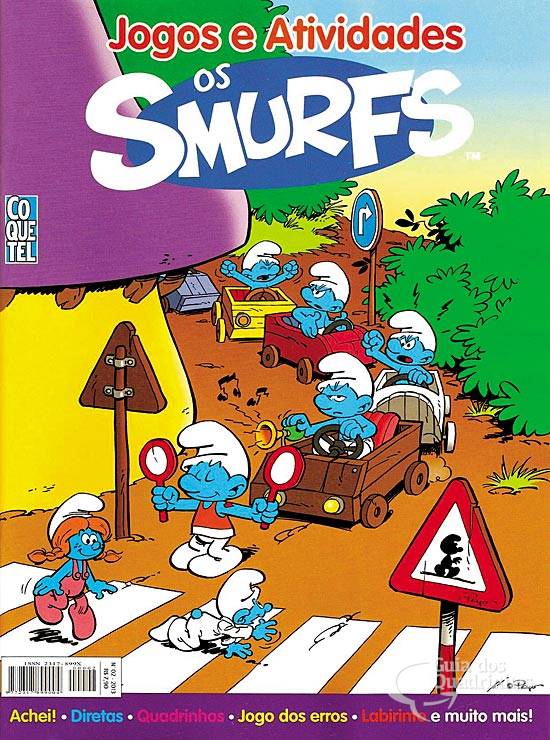 Diversas gags em um quadrinho, de jogos de passatempo, com diversos smurfs (diversas páginas).