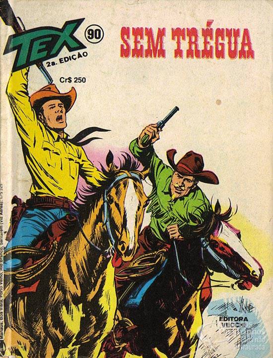 Título original italiano: “Senza tregua”. Continuação do número anterior. Tex e Carson finalmente desvendam o mistério do tráfico de armas que vem dando uma tremenda dor de cabeça às autoridades da região. Agora, a dupla de rangers vai atrás de Cris Carter, o chefão por trás do negócio.
