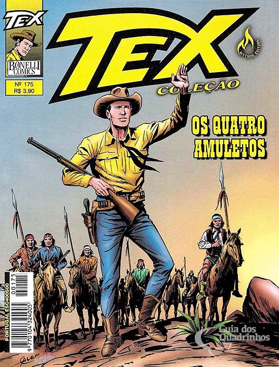 Título original italiano: “I quatro amuleti”. Continuação do n° anterior. O diabólico Mefisto transfere todos os seus poderes para seu filho, em troca de que este vingue sua morte. Momentos de tensão aguardam Tex e seus parceiros ao enfrentarem o Filho do Mal.