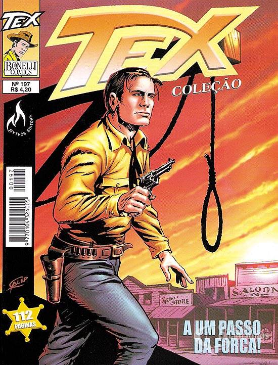 Título original italiano: “L’ombra del patibolo”. Continuação do n° anterior. Vítima de uma bem organizada conspiração, Tex é condenado a 20 anos na penitenciária, mas consegue fugir de lá com a ajuda de Carson. A notícia da fuga abala a quadrilha comandada por um influente empresário de Flagstaff. Myra Solano, membro da gang, detém documentos que comprometem o chefão e, para se livrar de uma condenação longa, entrega-os a Tex. É então que o homem de Flafstaff manda matar Myra.