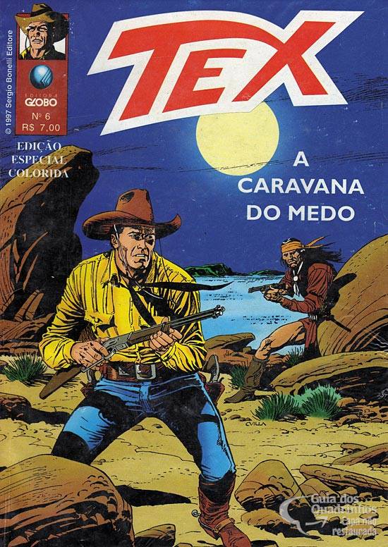 Título original italiano: “La carovana della paura”. Emigrantes a caminho da Califórnia são atacados durante sua jornada. Alguém está eliminando os homens da caravana e os pacatos pioneiros não sabem como se defender. Para sorte deles, uma certa dupla de rangers aparece e resolve ajudar. Tex e Carson logo descobrem que o agressor é um único índio, mas o que eles não sabem é por que o pele-vermelha está fazendo aquilo. Um dos melhores episódios dessta série, graças ao roteiro “amarrado” de Nizzi.