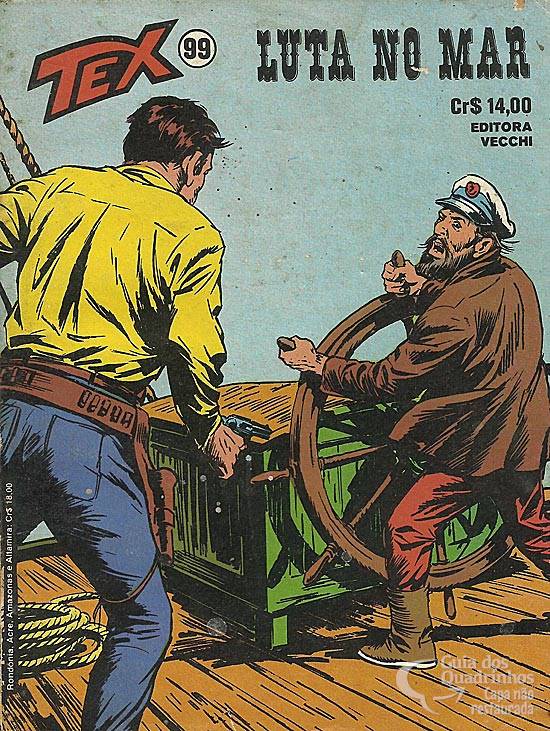 Título original italiano: “Lotta sul mare”. Depois da libertação de Kit das mãos do pirata Barba Negra, Tex e seus amigos rumam para São Francisco. Mas uma terrível tempestade desvia o navio para uma ilha repleta de simpáticos tubarões e doces canibais... Agora, o ranger e seus “pards” precisam mais do que nunca lutar por suas vidas.