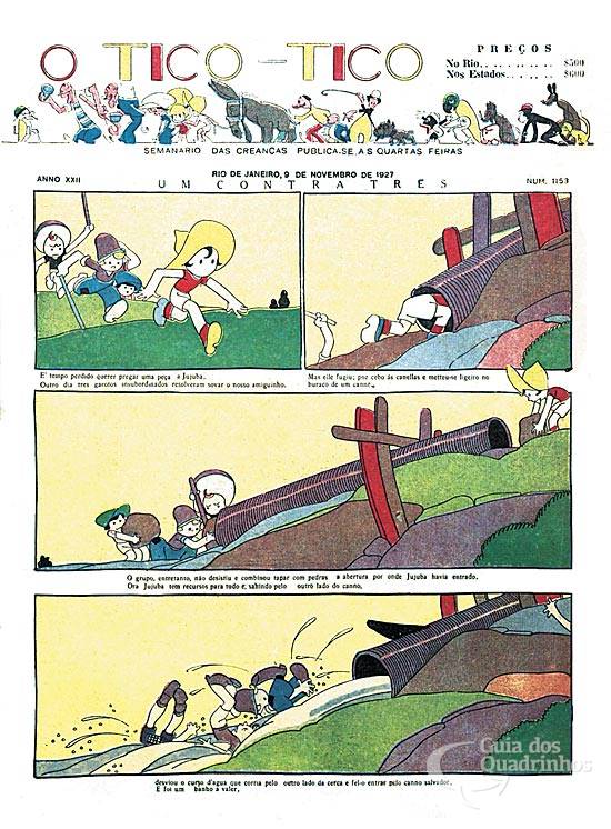 HQ da série “As aventuras de Chiquinho”. As férias de Chiquinho e Benjamin em Mangaratiba servem de pretexto para o reclame do “Almanach do Tico-Tico para 1928”.