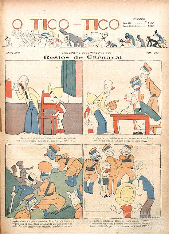 Estréia no Brasil do camundongo Mickey (chamado aqui de “Ratinho Curioso”). Título original americano: “Lost on a desert island”. Material das tiras diárias.
