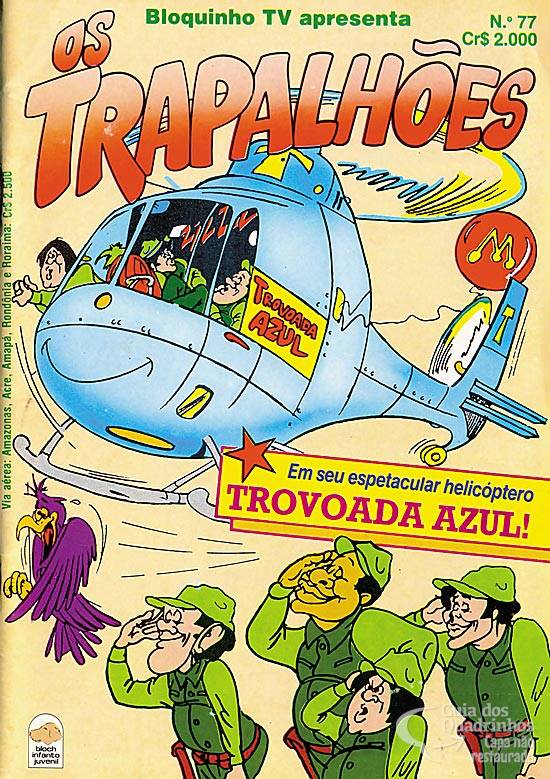 Didi, Dedé, Mussum e Zacarias satirizam a telessérie da rede ABC “Trovão Azul” (“Blue Thunder”), então exibida no Brasil pela Globo.
