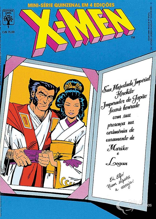 Wolverine está de casamento marcado com Mariko, os X-Men o visitam no Japão para a cerimonia. Vampira está no grupo a contragosto de Logan. Samurai de Prata quer acabar com o casamento e reclamar seu papel como líder da família. Logan se envolve na caça ao Samurai de Prata, Tempestade se envolve com Yukio e desperta seu lado mais 'negro'. A mutante decide mudar seu comportamento e roupas.